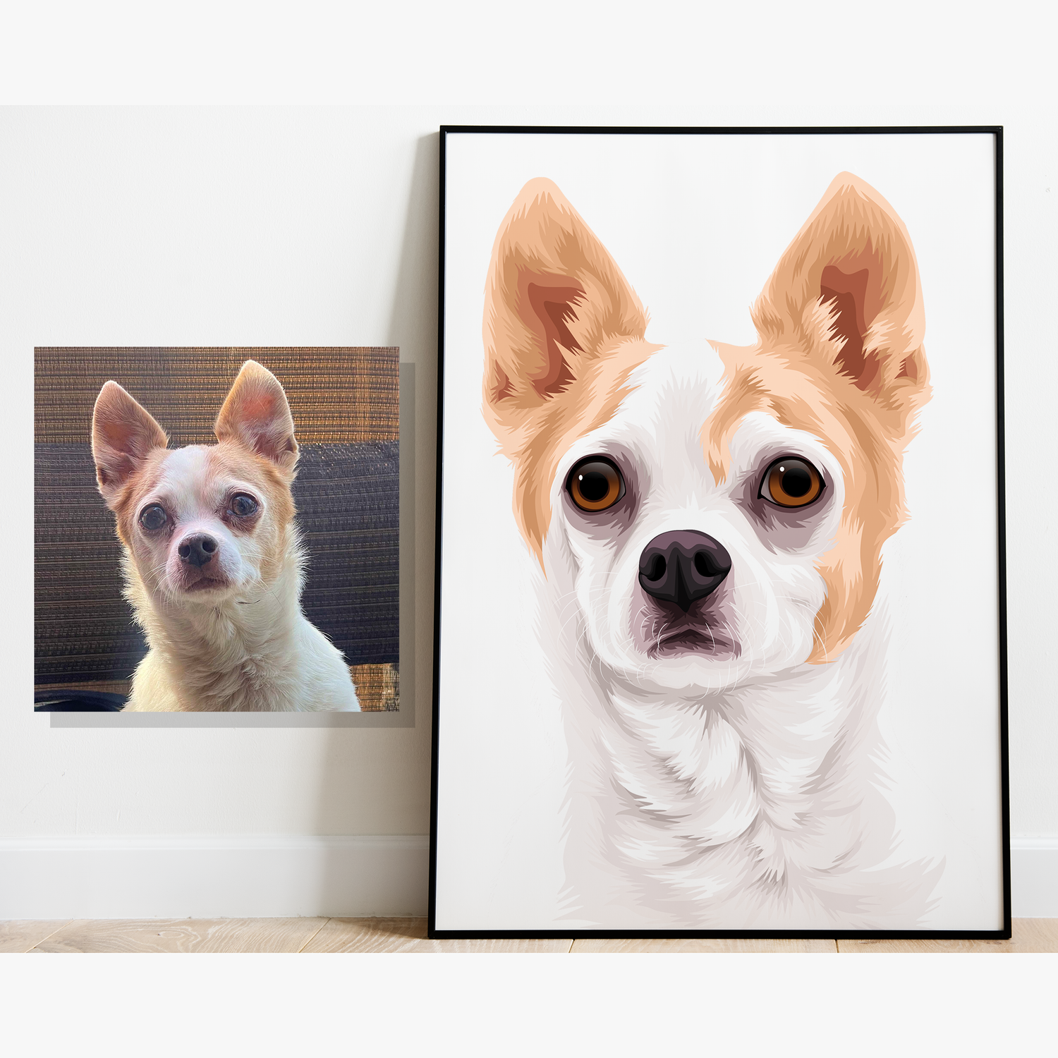 Our Classic Vector Pet Portraits is artwork made using graphics created from mathematical formulas which transform your beloved pets into beautiful works of digital art that will bring years of memories for you and your loved ones. Vector Pet Portraits are a perfect modern statement in any setting.